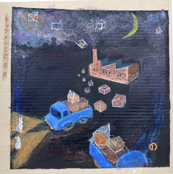 キャラメル工場の夜 #ある夜の出来事 #童画 #アクリル画