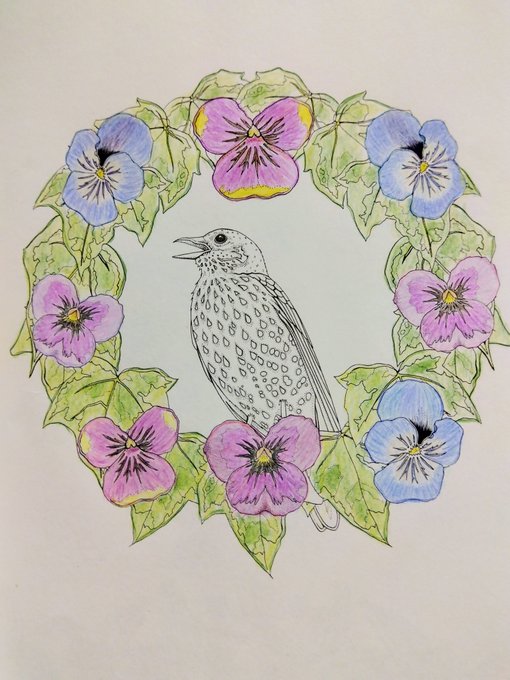 完成しました。 画用紙の裏側のせいか水彩絵の具塗ったら汚くなって後悔😢 色鉛筆用のスケッチブックやっとなくなった。 #絵描きさんと繫がりたい #色鉛筆画 #みんなで楽しむTwitter展覧会 #大人の塗り絵(下絵模写