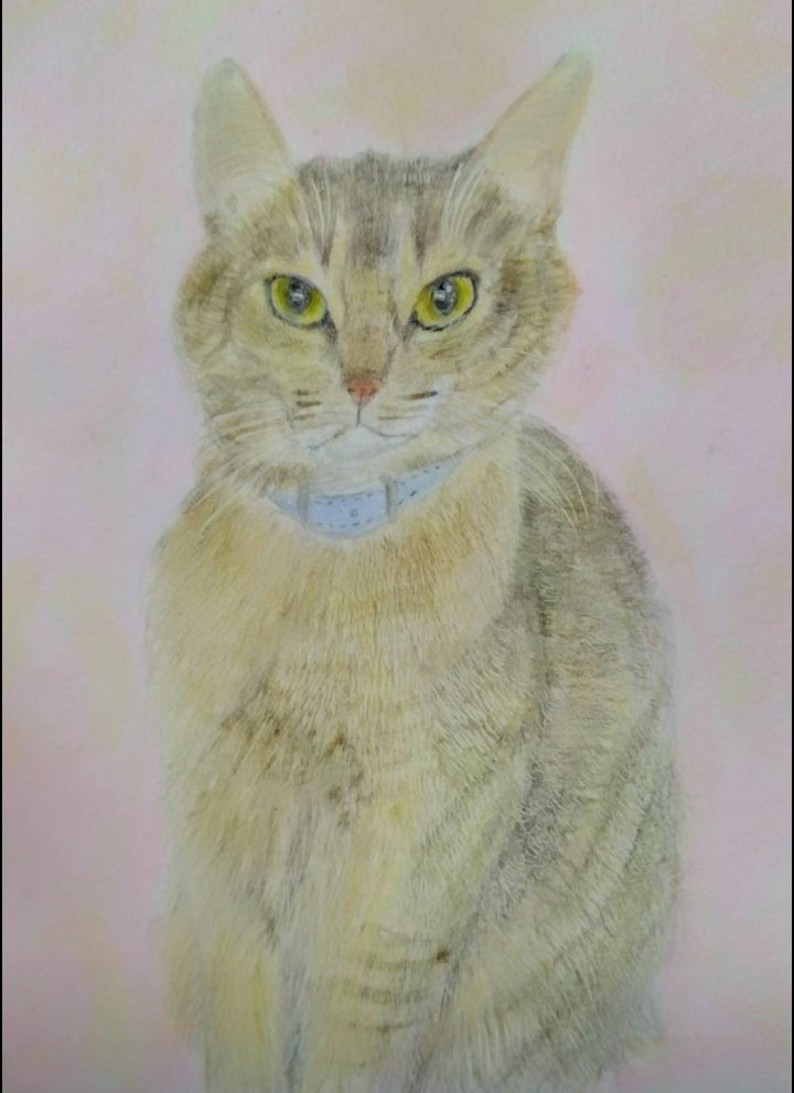 完成しました❢ 昔より気力、感情の起伏が激しい中、集中力を維持して描けました😭 今度は絵の展示会に行きたいです♪ #絵描きさんと繋がりたい #色鉛筆画(背景は水彩) #みんなで楽しむTwitter博覧会