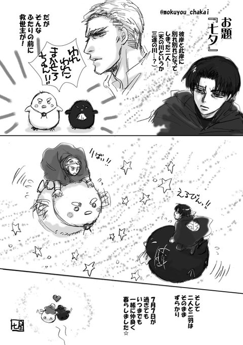 #エルリ版深夜の真剣お絵描き60分一本勝負 お題『七夕』 毎度遅刻&タイムオーバーですみません💦 ちゅんはカササギ的なアレです。七夕デートは年一度だけど、エルリはそのまま離れずに幸せになっちゃえー!😆