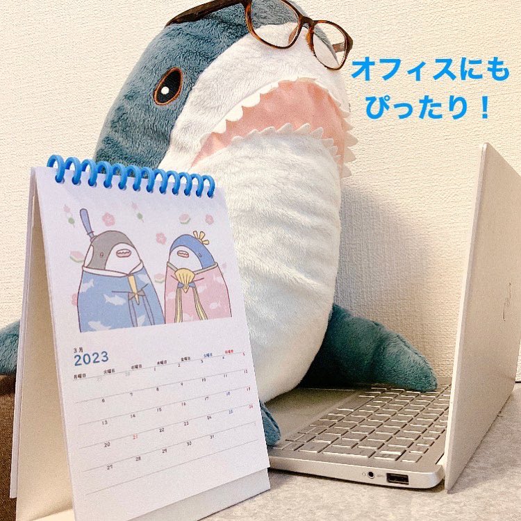 サメちゃんのカレンダー卓上タイプもできました!🦈 ・B5の半分サイズ ・2023年1月〜12月 書き込み可能!12ヶ月分のサメイラストをお楽しみいただけます🦈 minne.com/items/34199453 #カレンダー #イラスト #2023年カレンダー