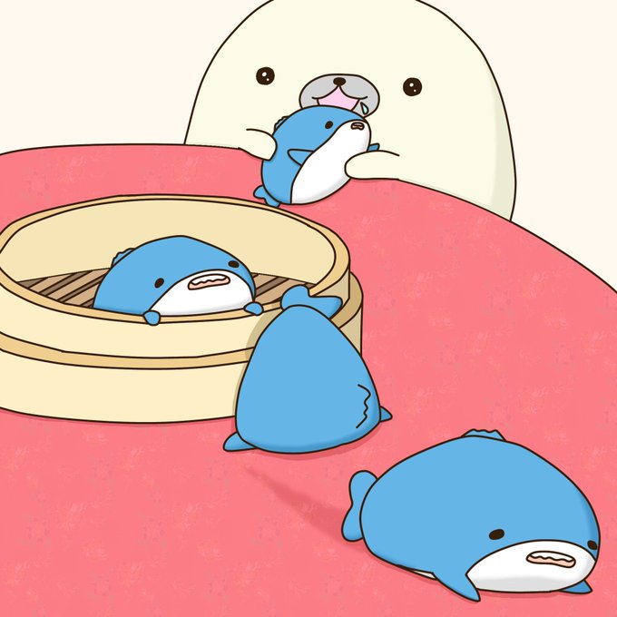 LINEスタンプ新作出ました! 【サメまん①】 あんまん、にくまん、チョコまん、ピザまんの4匹の美味しさがたっぷり詰まったLINEスタンプです🦈 是非見てみてください♪ line.me/S/shop/sticker… #サメまん #イラスト #LINEスタンプ宣伝部 #shark