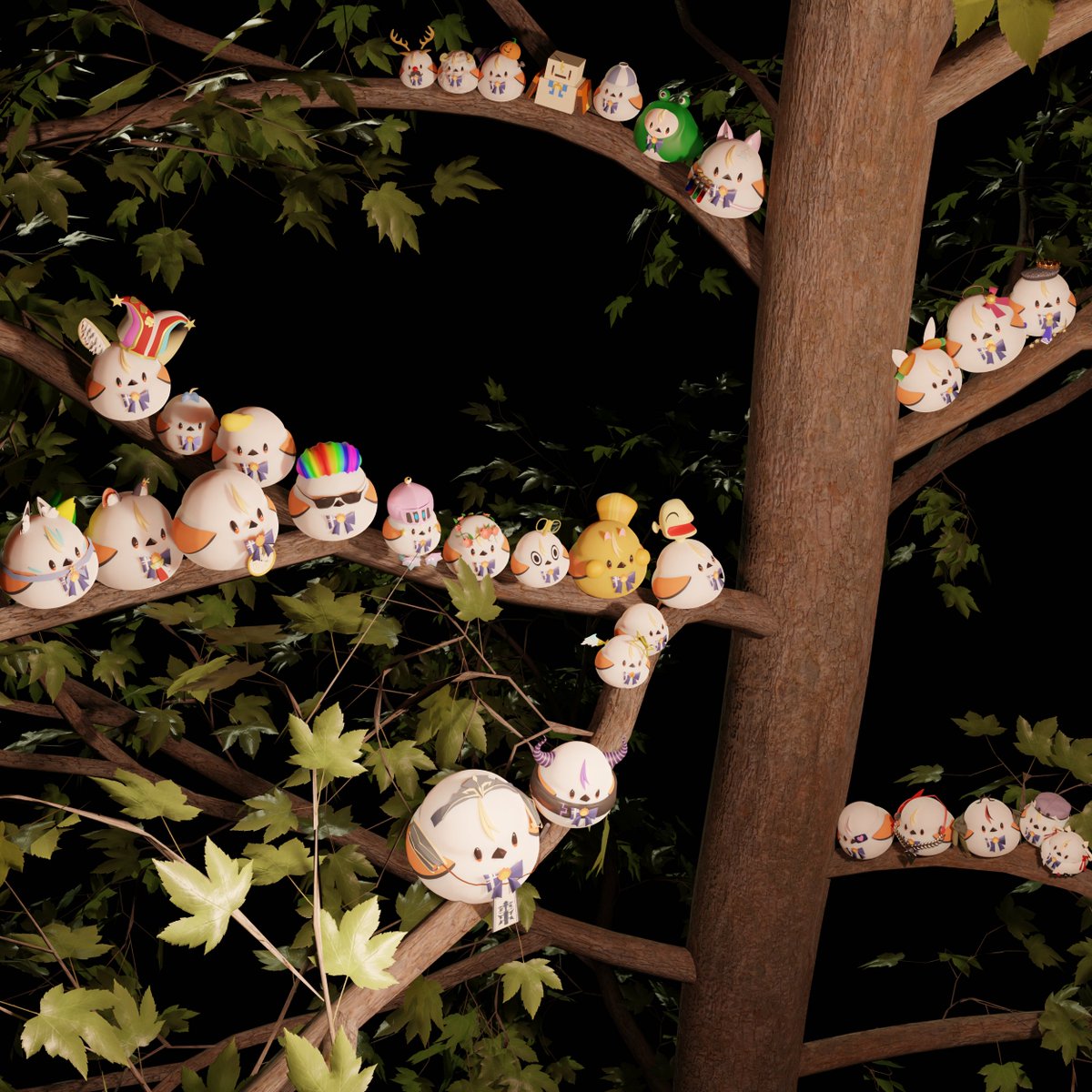 エルフレ集合最新版。今後はこの枝を埋め尽くしていき やす!(ライティングとかは微調整中!) #しらぬえ