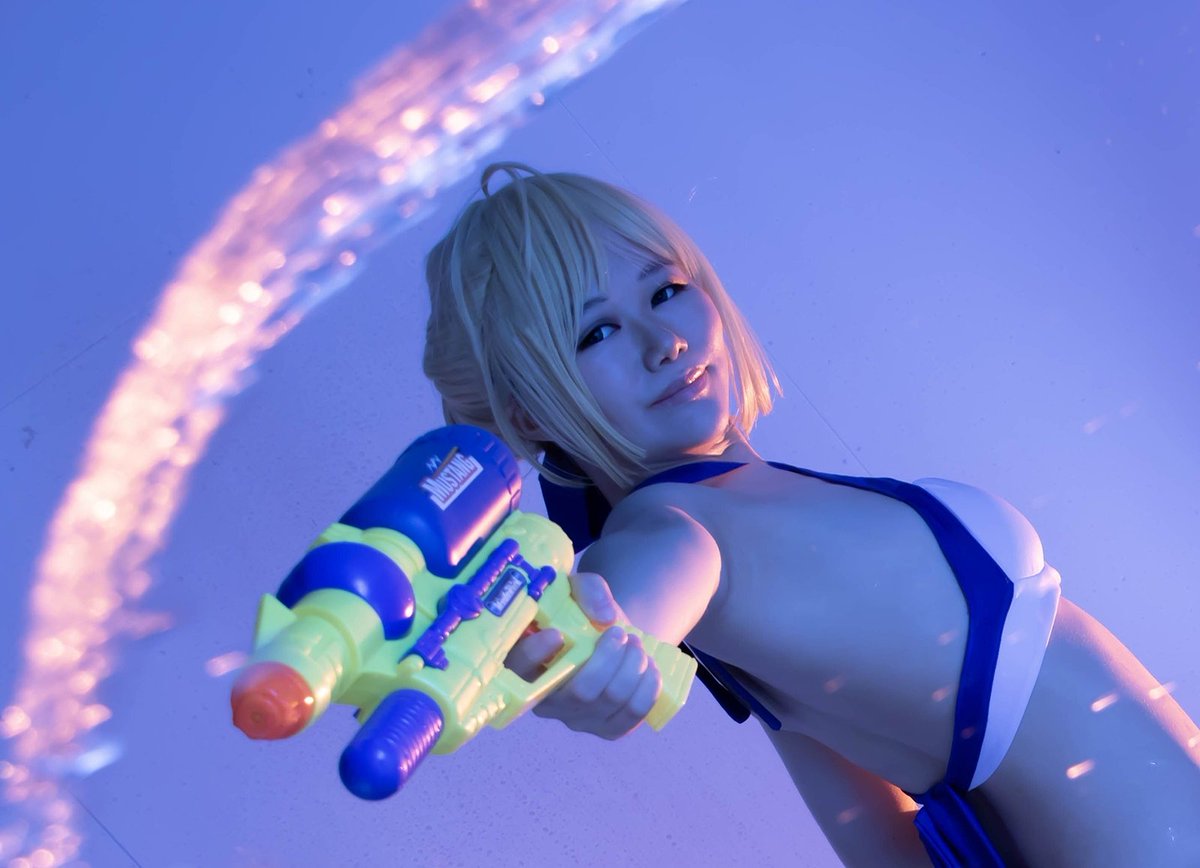 【コスプレ】FGO 水着アルトリア 1,2枚目:伊奈(@17FA202)さん 3枚目:ぜろ(@006_zero)さん 4枚目:みち(@michi305d)さん #平生スタジオ