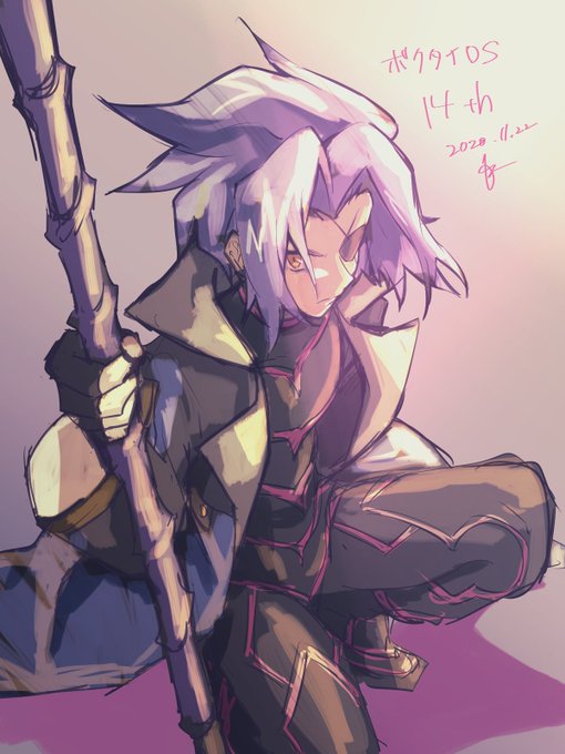 [お題:ホワイトデー]「黒ジャンゴを白っぽく描きたかった(供述)」、別名「マフラーをリボン結びしてる黒ジャンゴが見たかっただけシリーズ」(遅刻失礼いたします) #ボクタイ版ワンドロワンライ