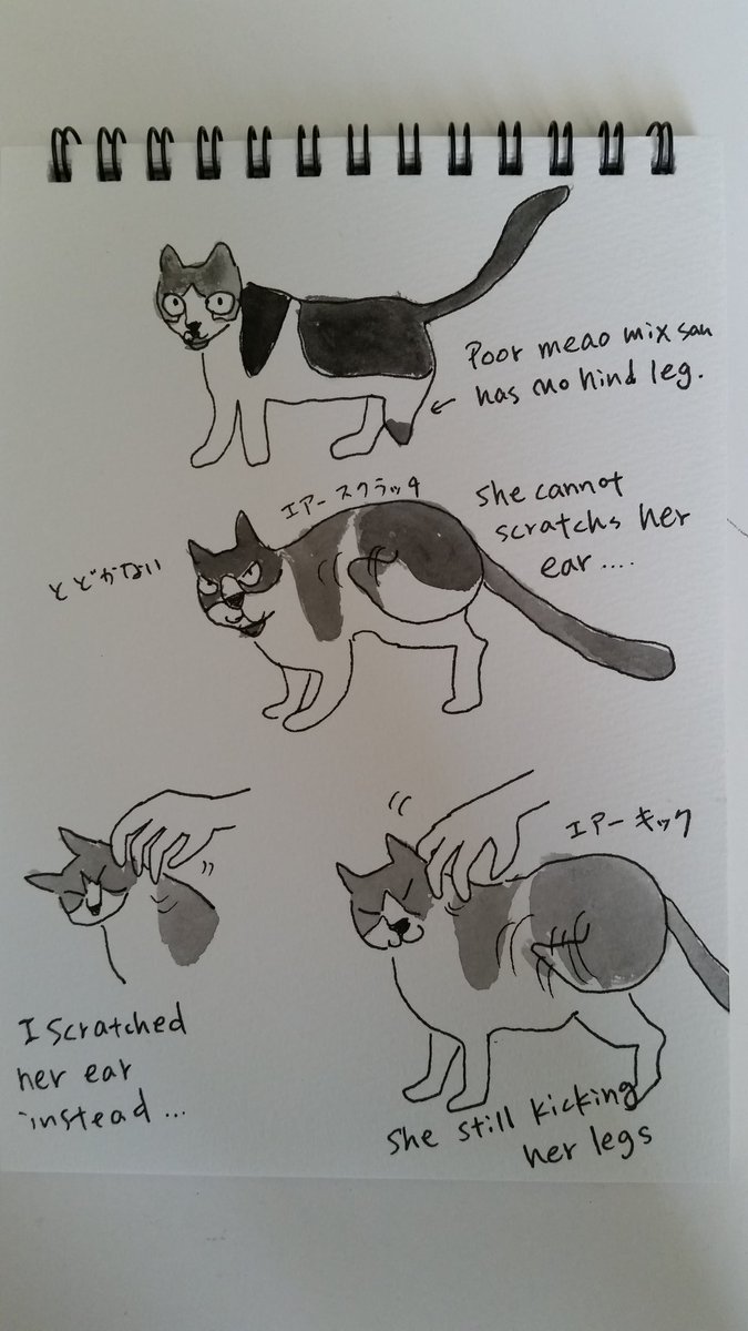 imaginary scratching. poor meao mix-san has no left hind leg.😭😭😭😭😭 I want to adopt her.