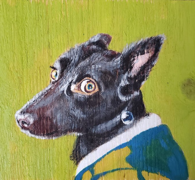10 36 dog with a pearl earring. 真珠の耳飾りのブリちゃん。 #タイピー日記 #ブリちゃん #ファンアート #Vermeer #fanart #girlwithapearlearring 20/10/01 07:55