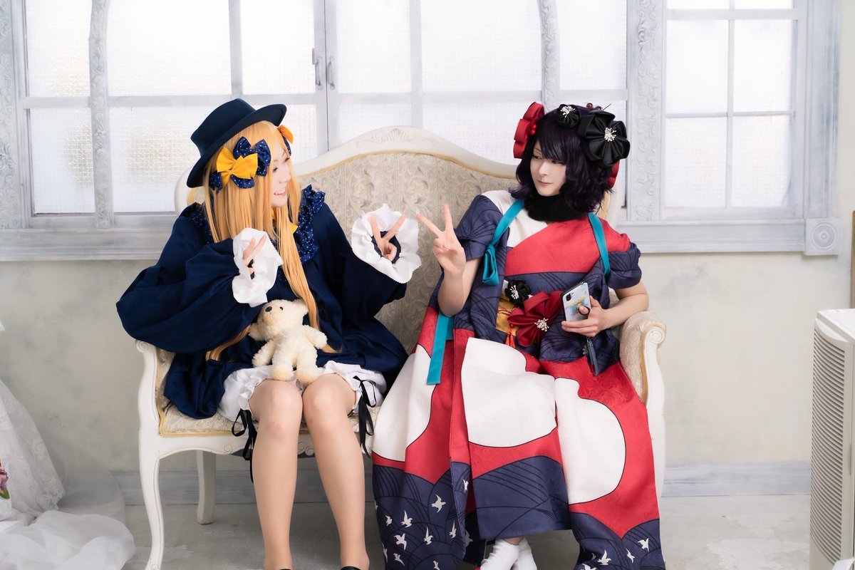 #レイヤーさんはコスプレの時のオフショットを晒して下さい リアル姉妹の雑談中✌️ 隣の北斎ちゃん:もちりお姉ちゃん