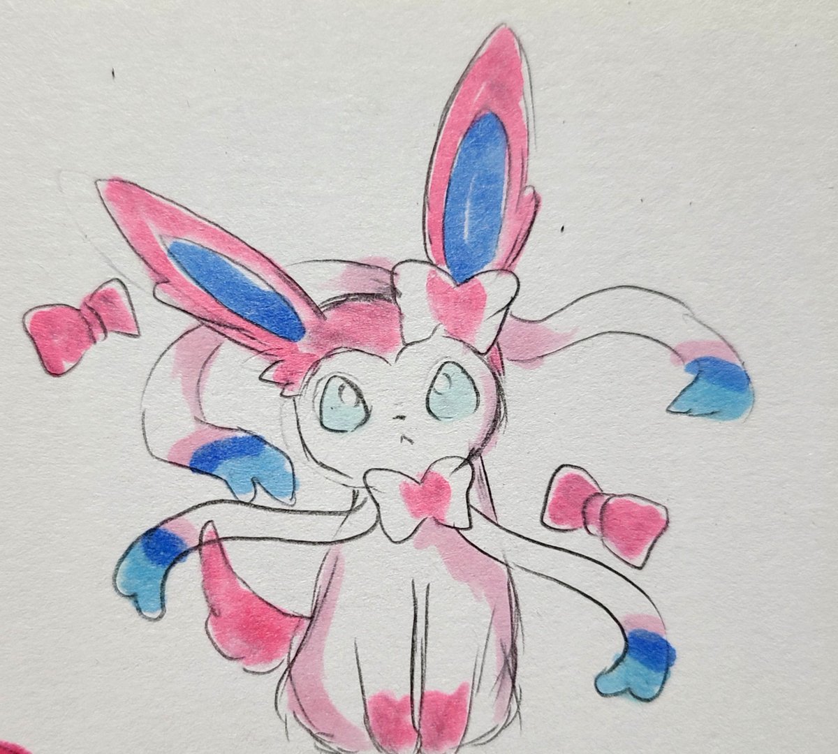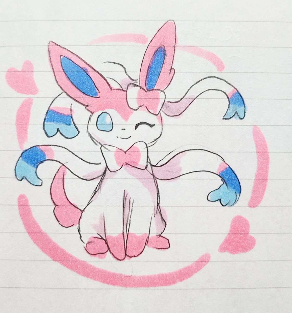 #いいねした人に後悔するほど適当なイラスト描く で描いた渡した絵。 ジラーチ ニンフィア 桃宮いちご ウォロ