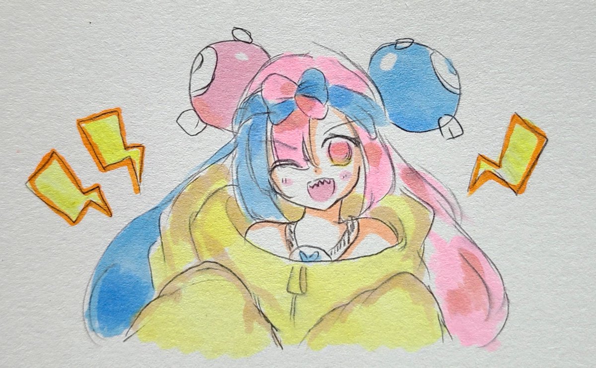 #いいねした人に後悔するほど適当なイラスト描く 本垢で反応いただいた方に描いた落書きです! チリ パモ 朝日奈みらい ナルシストルー
