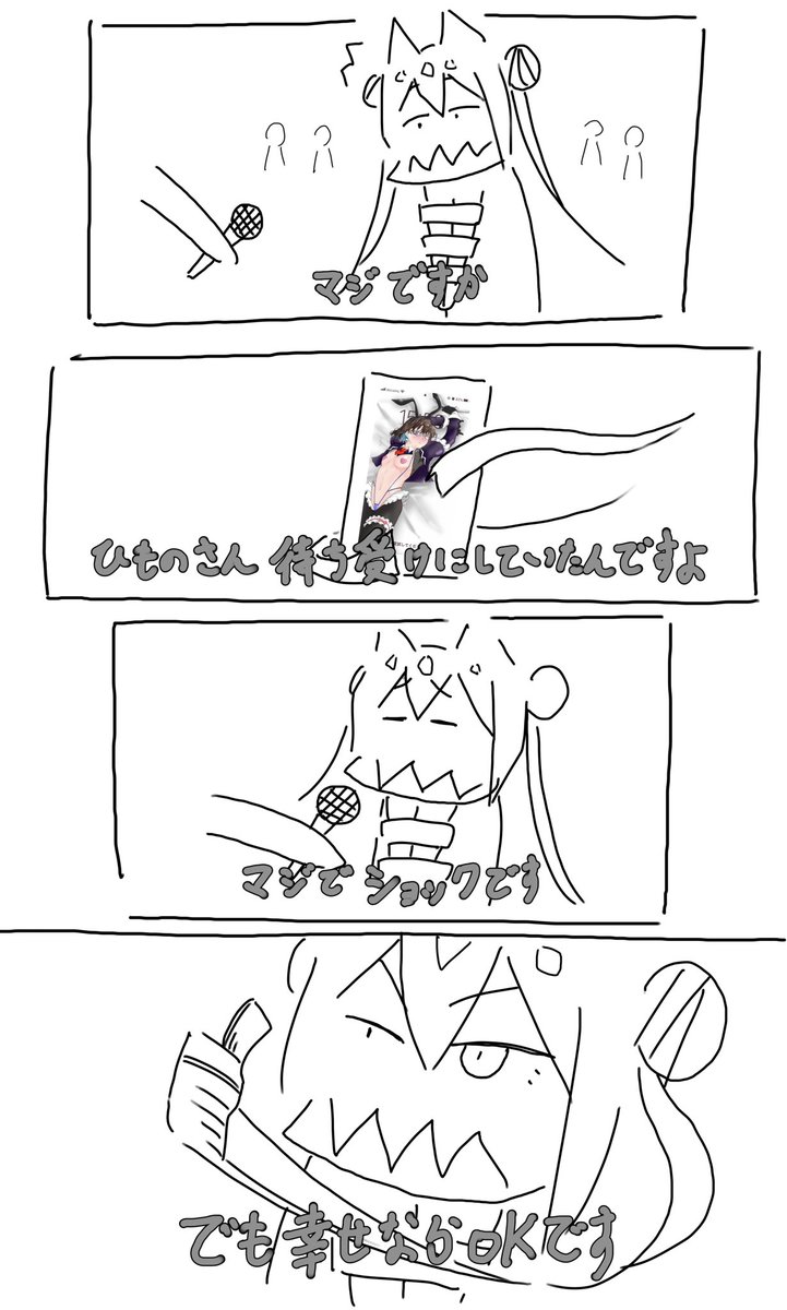 えにらぐらむさん(@eniragram)よりリクエスト 「バッティングセンターで球に1mmもかすらなかったけど、すっぽ抜けたバットがホームランになるひものちゃん🐟」 #乾物ひもの #干物展