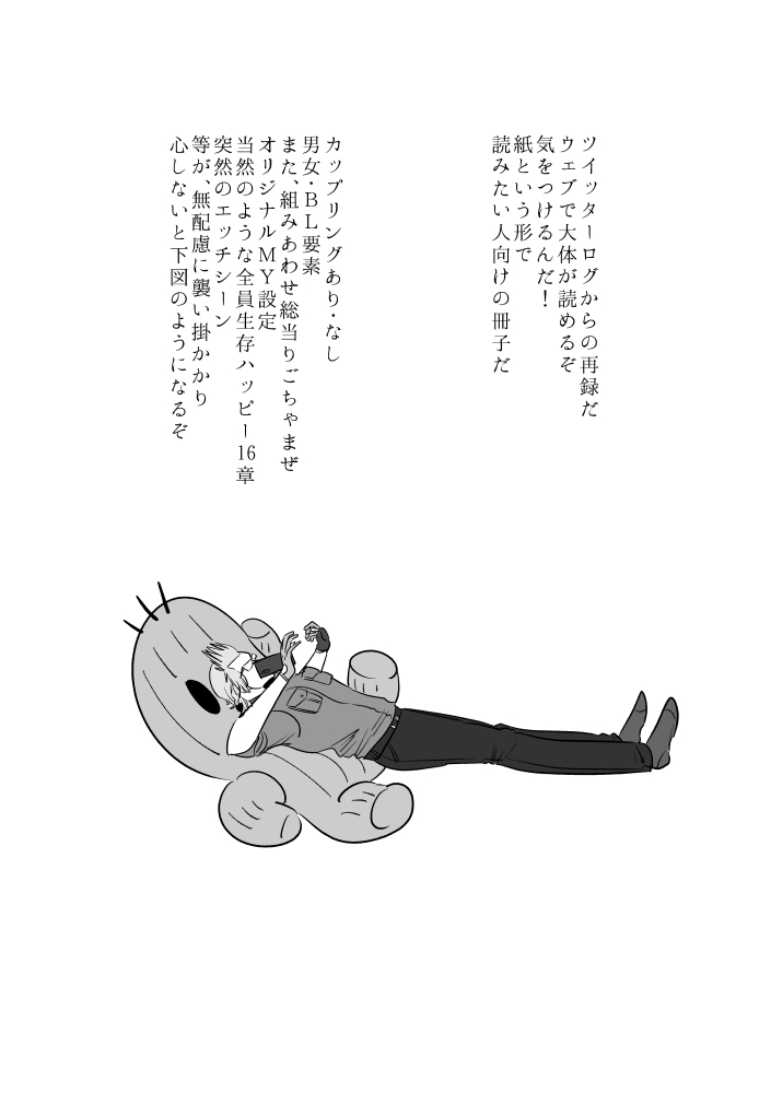 23 62 【新刊案内①】FF15オールキャラ本『ぜんぶ放て』 紙でまとめ読みをしたい方、お待たせしました!!ツイッターに流していた漫画の再録集17冊目です。注意書きは2枚目画像を参照ください。A5 108ページ イベント価格1300円です。サンプルはリプにもあります。後日通販予定です。 23/05/19 19:58