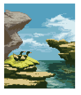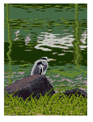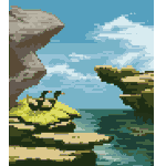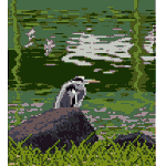 12 46 シラサギより少しレア度の高いアオサギがいたのでスマホカメラを構えて撮影しようと近づいたら不審に思われたのか岩陰に移動して石化けするアオサギ。 #pixelart #picopiyo 21/10/30 11:32