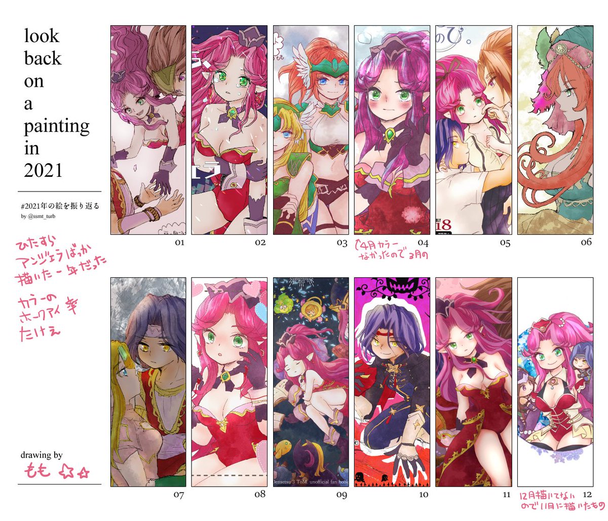 #2021年の絵を振り返る 日頃ぜんっぜんカラー描かない私がこんだけ描いてるのほんとなかなかない一年でした。どうもありがとうございました来年もよろしくお願いします(早すぎる年の瀬感)塗りを試行錯誤する日々で未だ定まらず