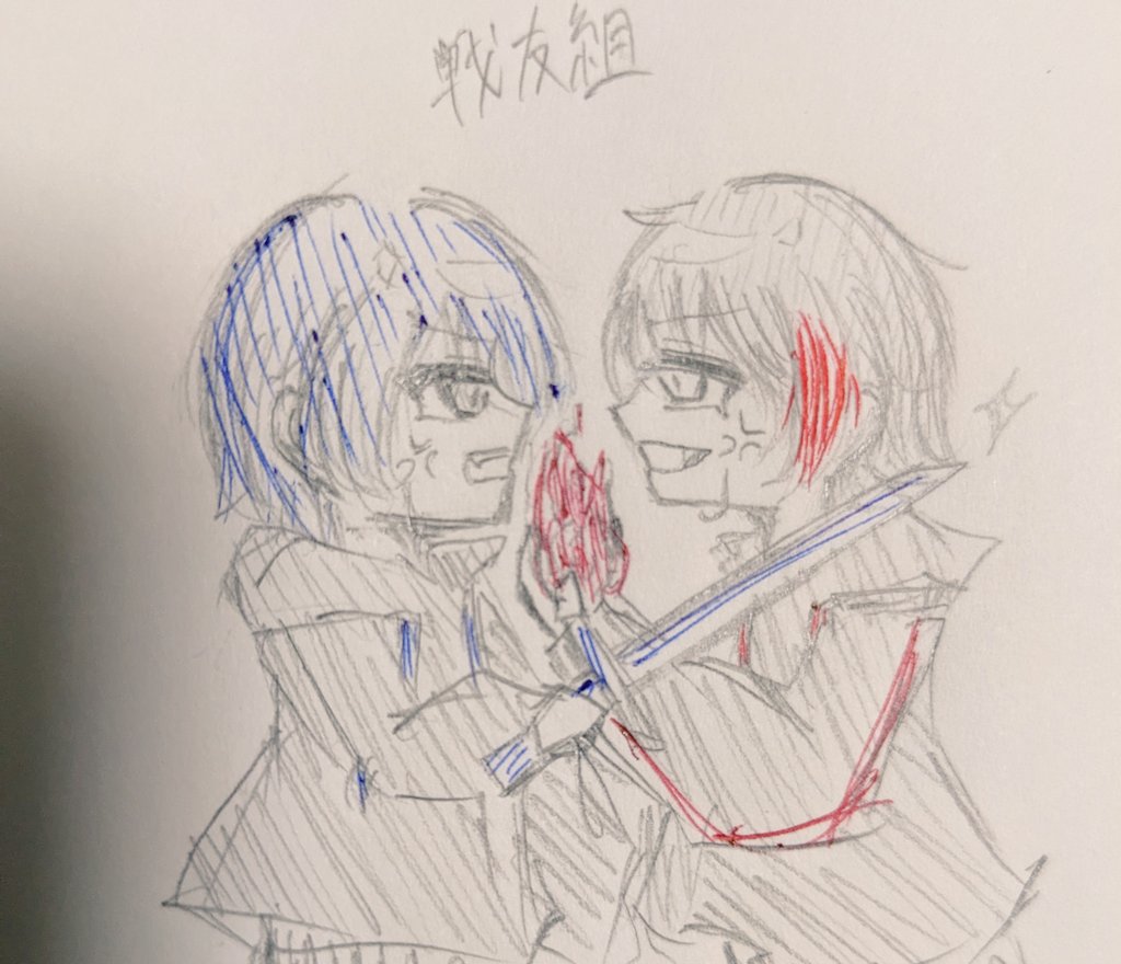 今日のめろぱかアニメの戦友組が可愛かったので~初描きだしラクガキだから違うとこあるかもだけど... #さむらいらすと #kaitoストーリー
