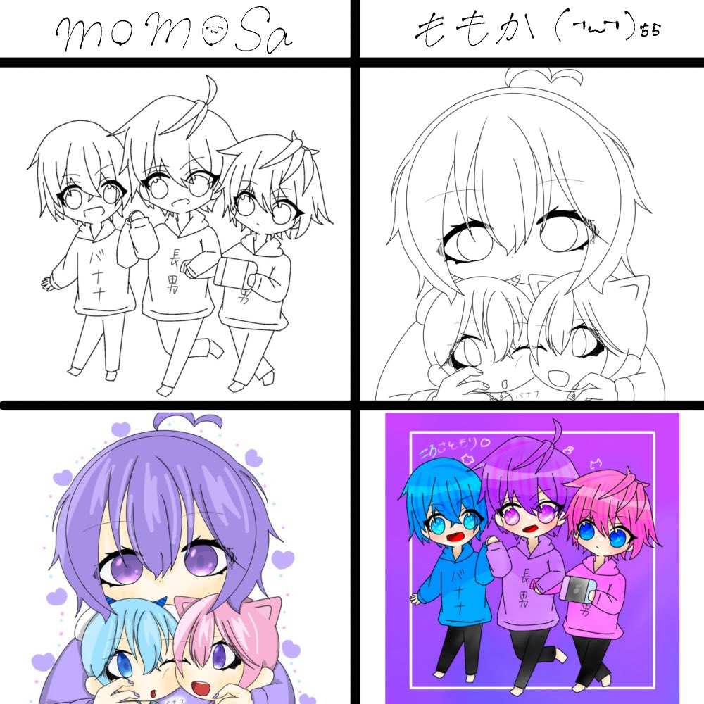 描き納めと言うことで☺️💗💙💜 おやすみなさい(*˘ ˘*)。*zzz #すとぷりギャラリー #さとみギャラリー #ななもりぎゃらりー #ころんくん #momoSaのさところもりおえかきちょう
