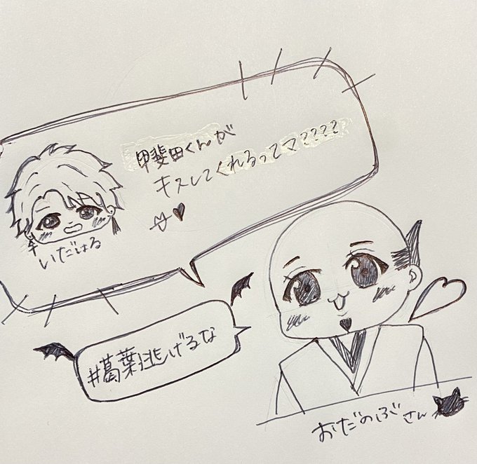 4 51 『キス部へようこそ𓂃 𓈒𓏸』 #おだのぶあーと #おだのぶ #描いた晴 #甲斐田晴 #葛葉 ((お名前出演)) デジタルじゃなくてすみません💦 ((かなかなが少し居た時、おだのぶの顔を見てたらおだのぶさんのお顔があまりにも可愛すぎて描きたくなってしまった…)) 21/08/23 05:05