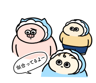 0 4 3/17 バブーちゃんに頭巾被らされるおでぶちゃんとぶーちゃん #イラスト #ゆるイラスト #ゆるいイラスト #1日1絵 #illust #illustration #drawing #似合ってるよ 23/03/17 23:59