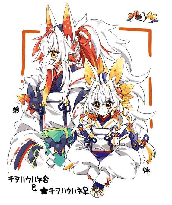 氷タイプその② ★鯨♀鶴撫子(ツルナデシコ)🐳🦊妖狐のロリ ★ノオー♂長万部(オシャマンベ)☃️でか妖狐少年 ノオー♀六花亭(ロッカテイ)🦊おバカ可愛い妖狐(?) 凍ッポ♀スズノヲ🐧ペンギン村の心優しい戦士 #pkg版ワンドロよそお題紹介用