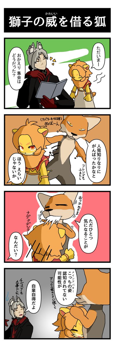 110 346 ケモ系アバターユーザーがたまにヒト(?)系アバター使うとこう言われがち。 #VRC漫画 22/08/13 18:18