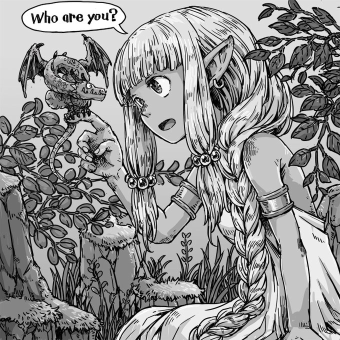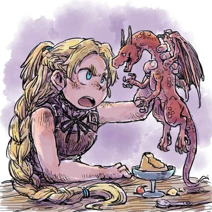 276 2056 そういえば、この絵は再録したことなかった気がする? どこぞの女の子が小さなドラゴンと出会ったお話。 23/05/02 20:37