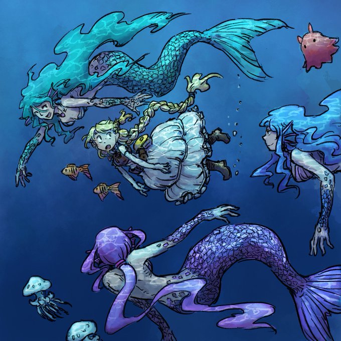 今日の姫さまはなぜか海の中。 人魚のお姉さん達が何やら話しかけてきたようです。