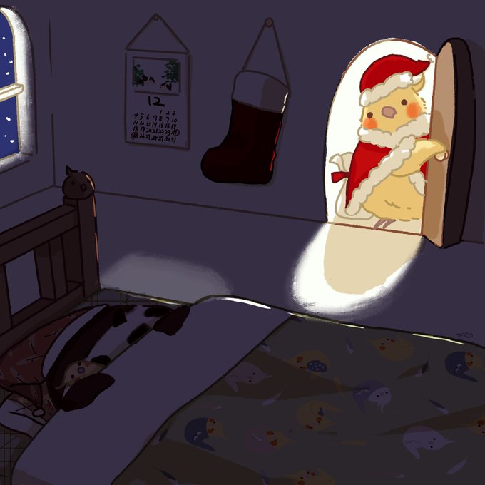 9 62 こそっと… Merry Christmas✨ #イラスト #すずめ #オカメインコ #クリスマス 22/12/25 17:04