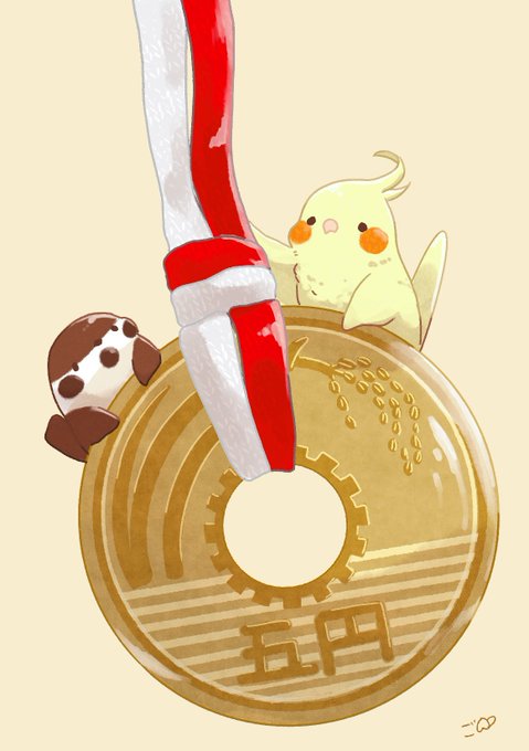 ご縁がありますよーに! #イラスト #すずめ #オカメインコ