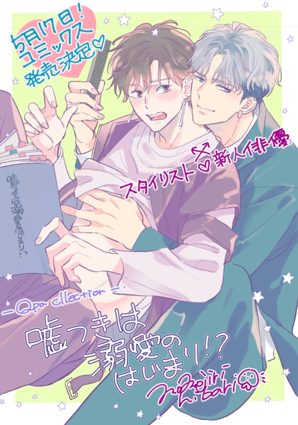 ❤嘘つきは溺愛のはじまり!?❤ 5月17日Qpaさんからコミックス発売決定! めちゃ愛が深いスパダリ美容師×ちょっとおバカなワンコ系新人俳優…です! ふたりは幼馴染で親友だったのだけど、告白の演技の練習で勘違いさせてしまって…? どうぞよろしくお願い致します💕 #嘘つきは溺愛のはじまり!?