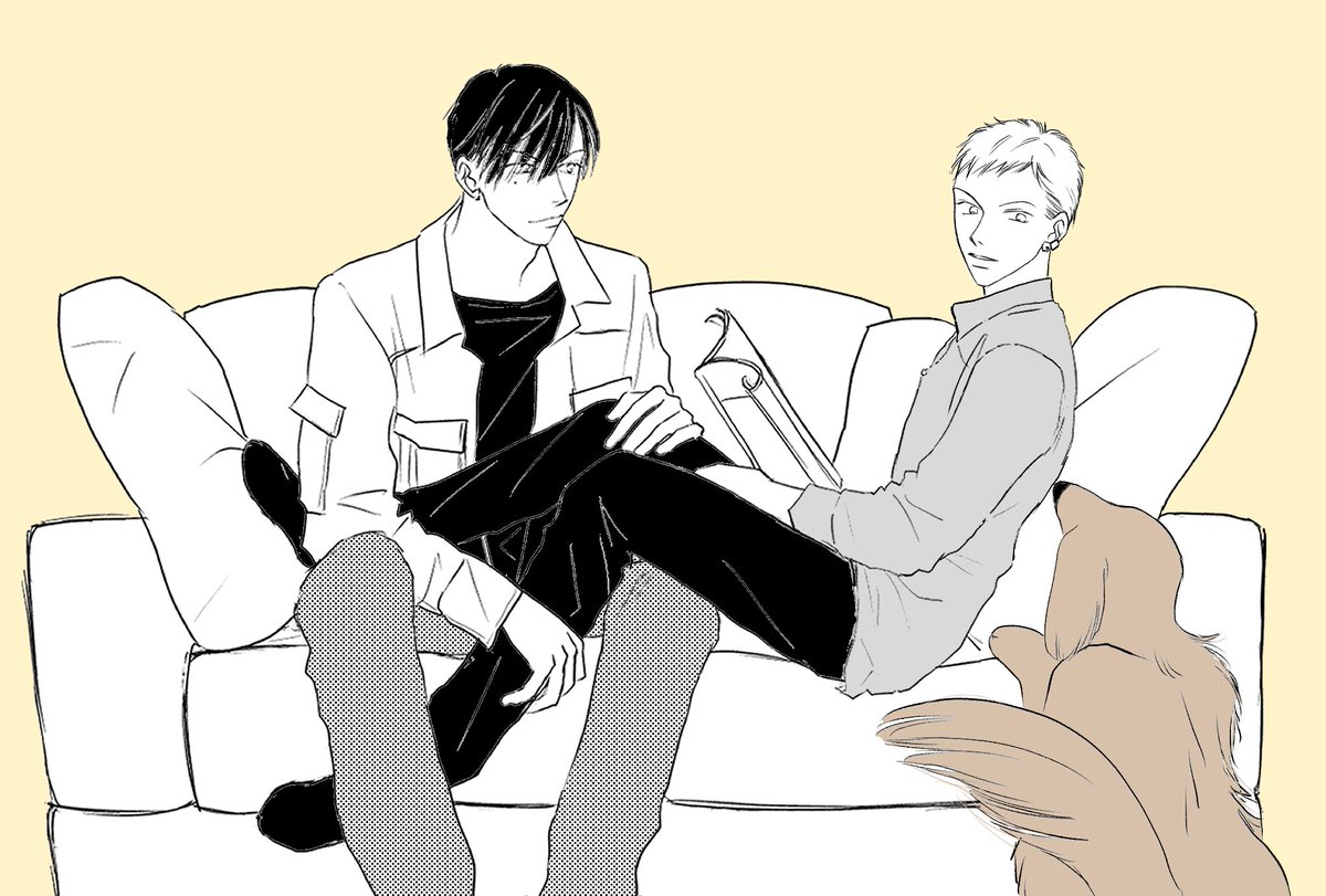 #今月描いた絵を晒そう あんまりアップできませんでしたが、漫画描いて落書きしてました😅 突然おかっぱ男子にハマって、雪の日にバレエ少年を拾うお話とか(左)、いちゃちゃ同棲DDケンカップル(右)とか妄想してました🥺💦💦 次の満月には、ドクターズを完成させてアップしたいと思いますキリ✨