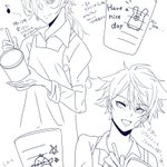 11 99 閉店事件面白かった〜。 2人が店員だったらって妄想の落書き チラペチーノにイラスト描いてくれ〜 #水凪る自由帳 #ぜろつーらいぶ 22/05/25 07:10