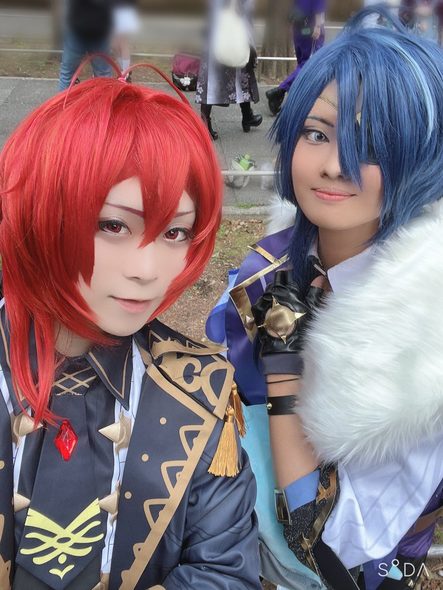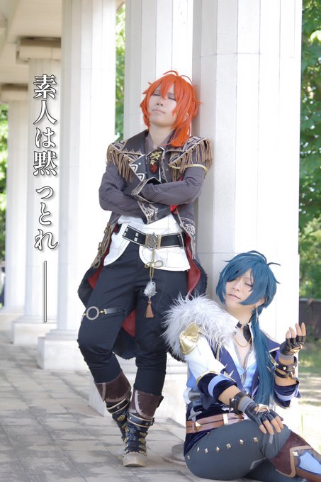 7 35 【cosplay】 原神 ガイア:もい ディルック:@ti86ii125_lilac Photo:@rom_river #コスナビ #岩船山 22/01/14 20:23