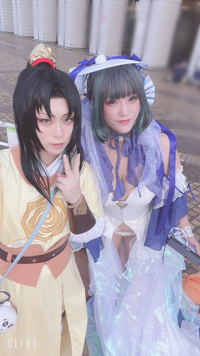 アコスタ3日目参加してます~!☺️✨ 紗月さんの万葉くんと一緒にいます!! 魈くん久しぶりでメイク失敗したw😂 帝君ぬい持ってきたよ~~! #アコスタ池袋