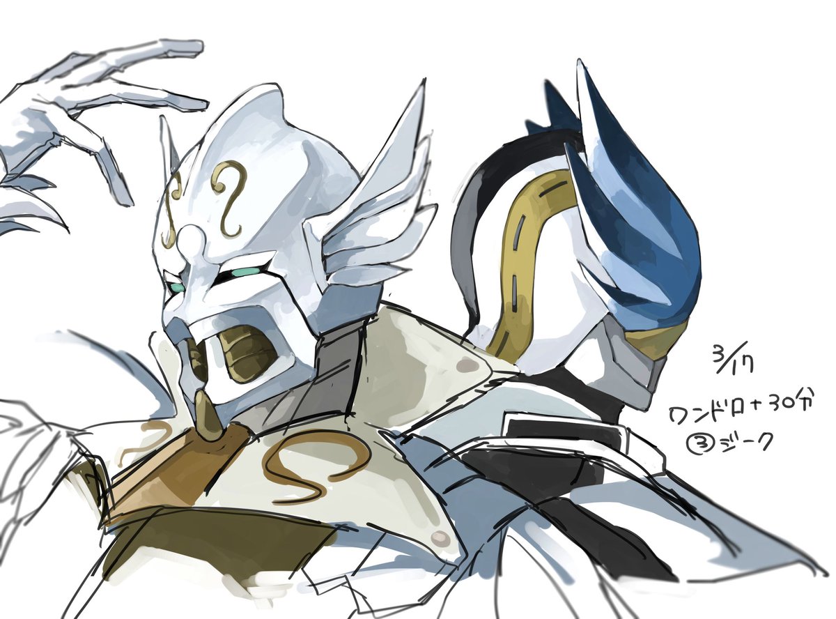 37 119 #特撮版深夜の真剣お絵描き60分一本勝負R ⑦あなたの推し怪人 早めに描いて1時間15分です。 推し怪人はライダーはジーク、戦隊はワイズルー様です…! 21/06/23 23:04