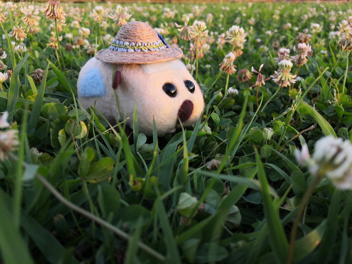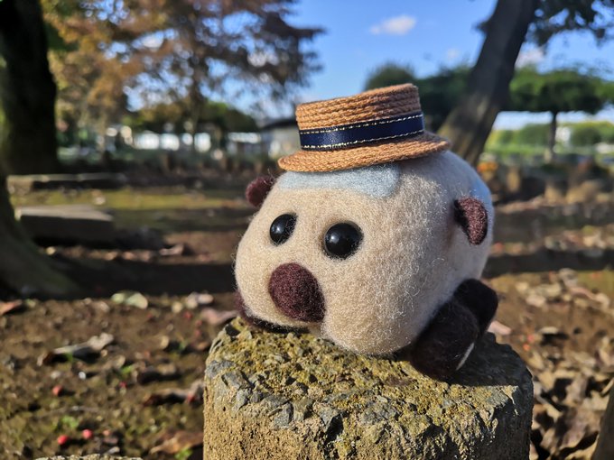 さっそく作った帽子をかぶっておでかけしてきました。 日除けの意味はあんまりないけどかわいいからヨシ! #モルカー #モルカーファンアート