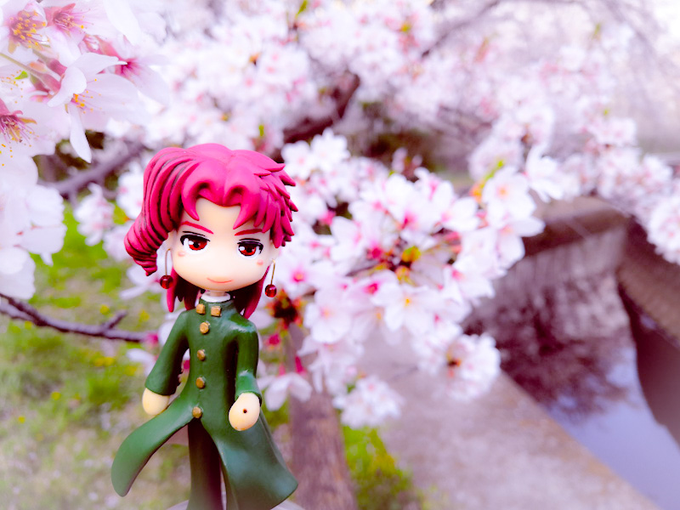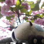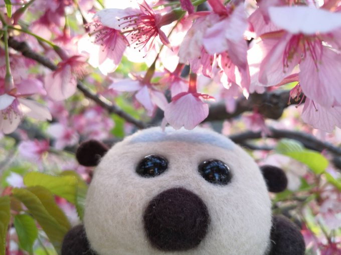 河津桜とポンタ 葉桜になってたけどそれはそれで綺麗でした🌸 #モルカー #モルカーファンアート