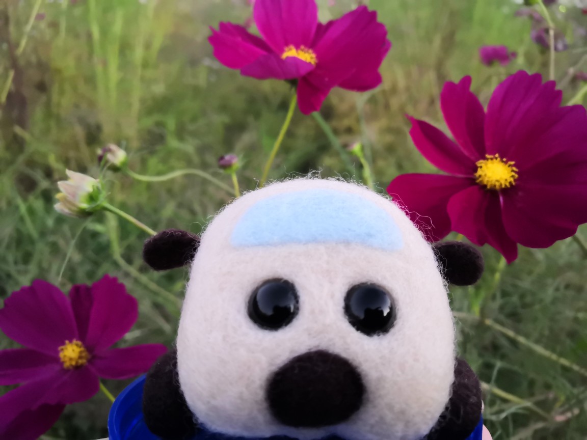 コスモスとポンタ 一面コスモス畑でとてもきれいでした🌼 #モルカー #モルカーファンアート