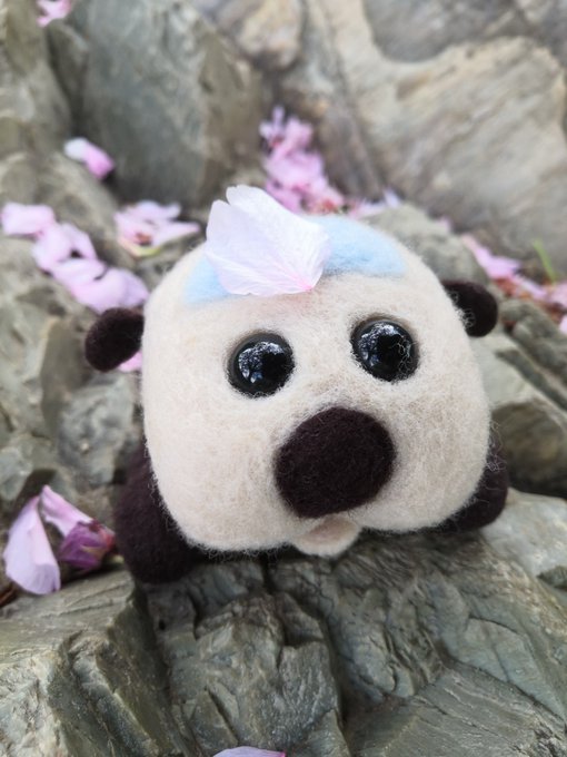 1 5 八重桜とポンタ 散った花びらがとてもきれいでした🌸 #モルカー #モルカーファンアート 22/04/19 21:34
