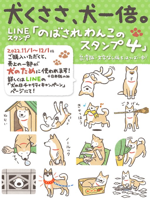 2022年「犬の日」を記念して「のばされわんこのスタンプ4」を本日リリースしました!犬度増し増しの犬しぐさ満載です。 12/1までにお買い上げいただくと、なんと売上の一部が犬のために使われます!詳しくはスレッドのキャンペーン特集ページをご覧ください。 line.me/S/sticker/2098…