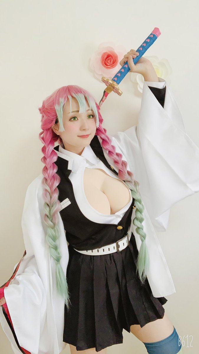 ⚠️cosplay⚠️ ※反転、偽おっぱい、地毛見え 私 いたずらに人を傷つける奴には キュンとしないの 久々(夏ぶり)の蜜璃ちゃんコス!! #甘露寺蜜璃コスプレ #恋柱 #鬼滅の刃コスプレ