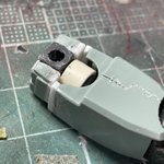 頭部内部の干渉部分をスピンブレードで切削。 先日ディテールを追加しておいた襟パーツに合わせると顎も引きやすくなり、顔も見上げ易くなりました☝️🙄 #ジム・ストライカー #HGUC #ガンプラ twitter.com/555bancha/stat…