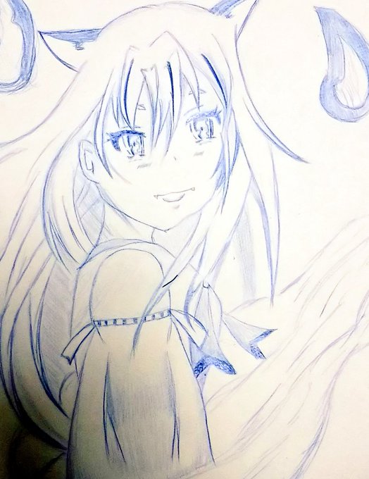 うおにゃん!! #イラスト #アナログ #色鉛筆