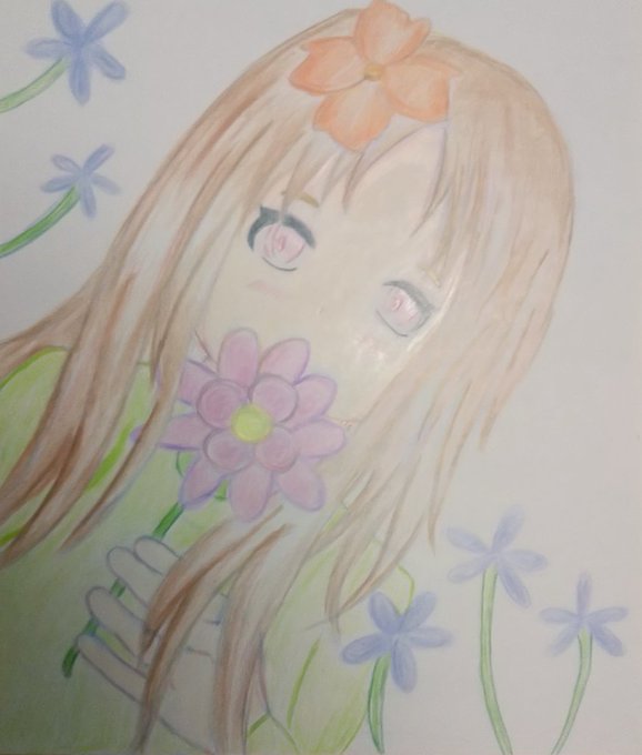 0 3 春ですね🌷🌱🌸🌿🌼☘️🌈•*¨*•.¸¸♬︎♪♪ #イラスト #アナログ #色鉛筆 23/03/21 22:22