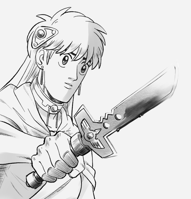 敢えて昔描いた絵のポーズっぽく進めてる