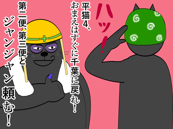 4コマ漫画☆ももものもんちーReturns第57話『もってけ泥棒』の巻 ブラック連合の平猫たちは泥棒みたいな恰好をしてますが、さて、何を盗むのでしょう???? #金曜日 #4コマ漫画 #漫画が読めるハッシュタグ