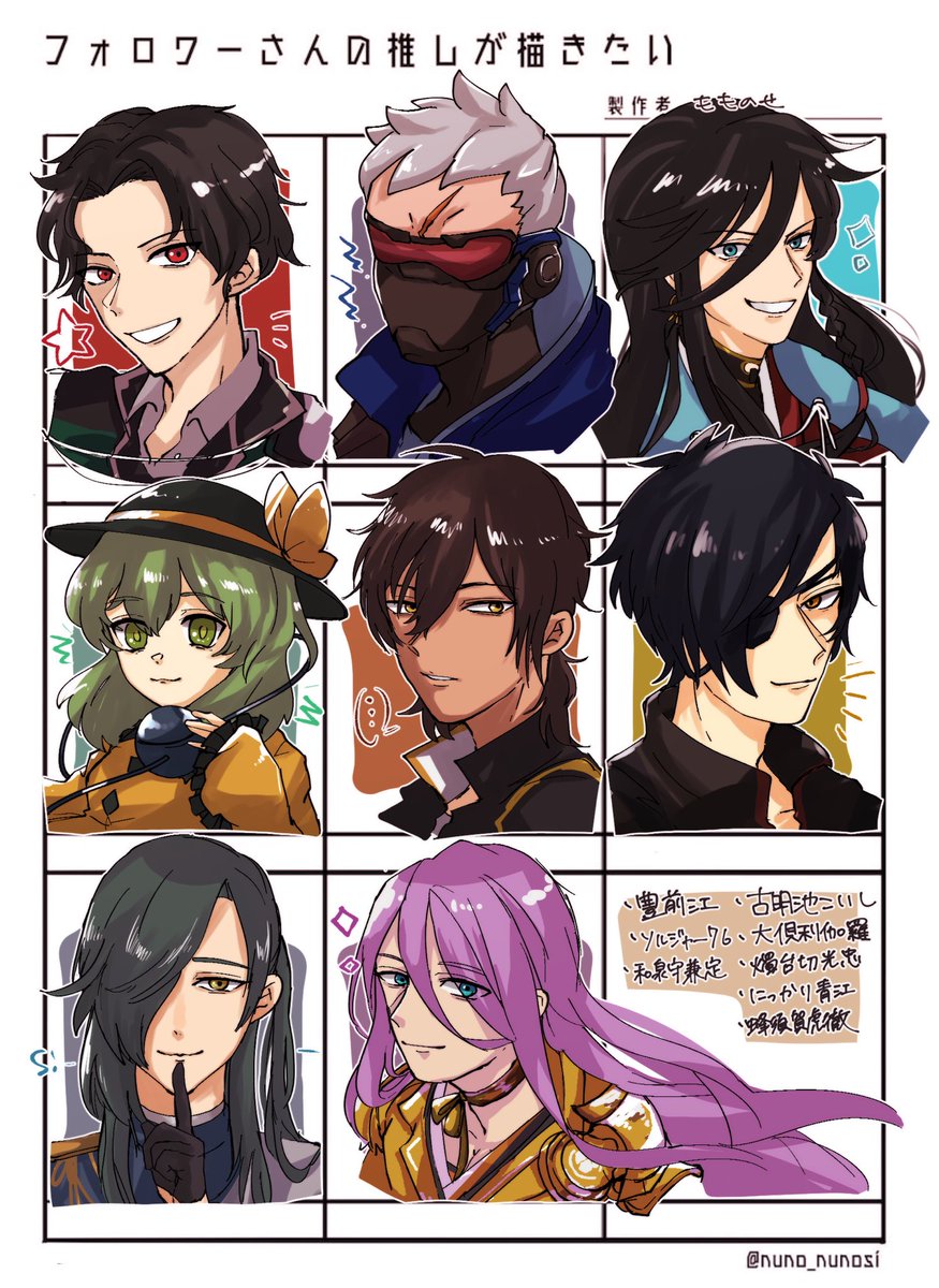 #フォロワーさんの推しが描きたい 描いた〜!!8キャラ!!! フォロワーーー!!!構ってくれてサンキュー💃💥💥💥