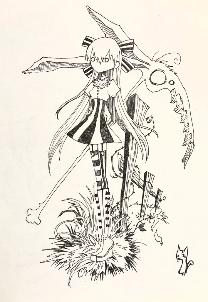 inktober Day 12: チェーンソーとクー君 前回の狐耳の子とは別人です。 My original charagters. Click here for details↓ pixiv.net/users/1465183/… #inktober2020 #inktober #originalArt #boys #Goth