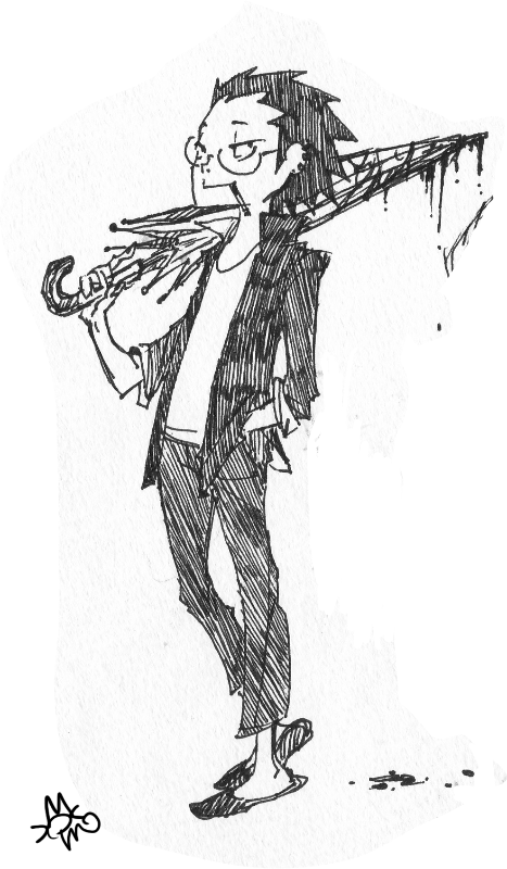 inktober Day 14: コウモリ傘のテツ メガネのインテリヤンキー君。この子については下記URLから。 My original characters. Click here for details↓ pixiv.net/users/1465183/… #inktober2020 #inktober #originalArt #boys #Goth