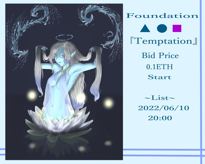 ▲■● @foundation 🔥New drop 『Temptation』 🔥6/10(Fri) 20:00 (JST) 🔥Price 0.1ETH (Auction) Temptation of Temptation from the Spirit of Water Blooming at Midnight foundation.app/@UMI_NFT/umi/1 #NFT #nftart #FND #NFTCommumity