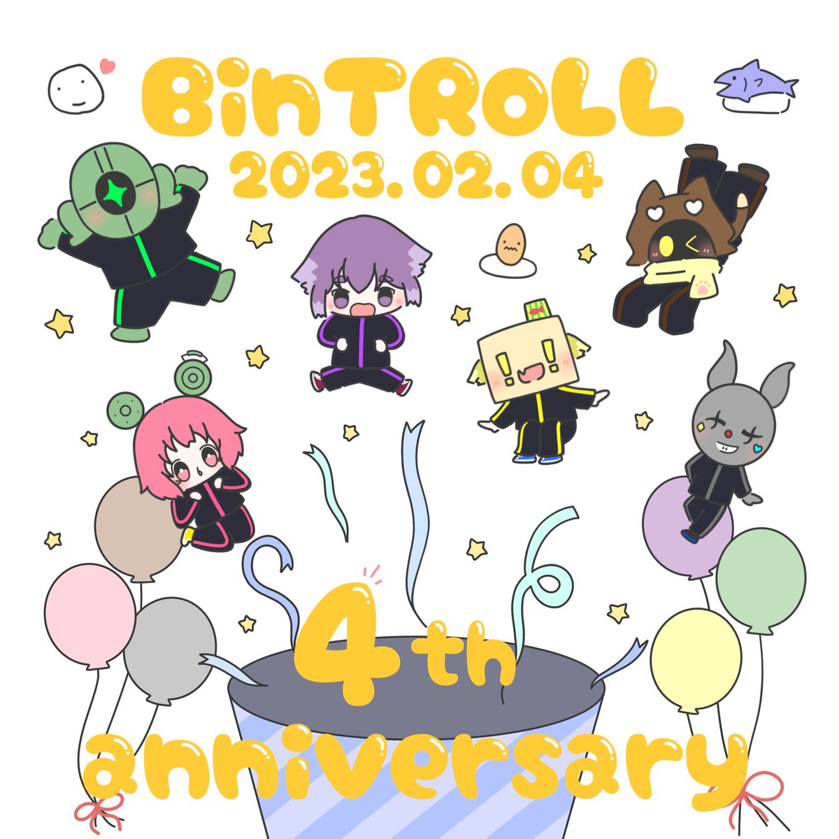 BinTRoLL4周年おめでとうございます!!🐟🎉🎉 いつもゆるゆるで楽しそうな6人を見てはっぴーになっています🫶 これからも応援しています!🎈 #bintroll四周年記念 #bintrollFA